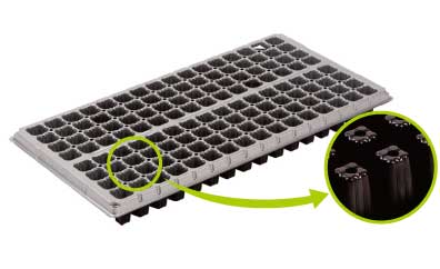 レイの温度が約5~7℃低く、夏季の育苗では根圏のストレスを減らすことができ、地上部(大気)の湿度を下げるため、過湿による発病率を減少させます。 冬季の育苗には、短時間で温室の温度を上昇させる温度管理に優れ、冷害や低温障害に対する管理が容易です。